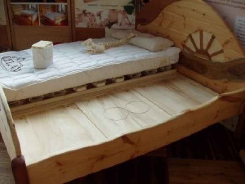 Der Betteinsatz wird aus heimischer Kastanie – der einzigen Holzart, die Erdstrahlen nicht durchlässt, sonder umlenkt – mit einem massiven Holzrahmen hergestellt.Unter Einhaltung der Naturgesetze bleibt die Oberfläche naturbelassen, es werden keine chemischen Produkte oder Metalle verwendet.